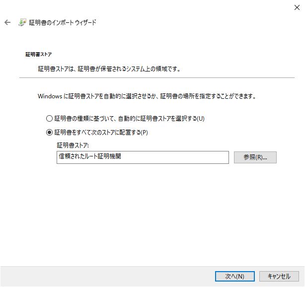 これで Windows がこの証明書を「信頼された発行元」として扱います。
